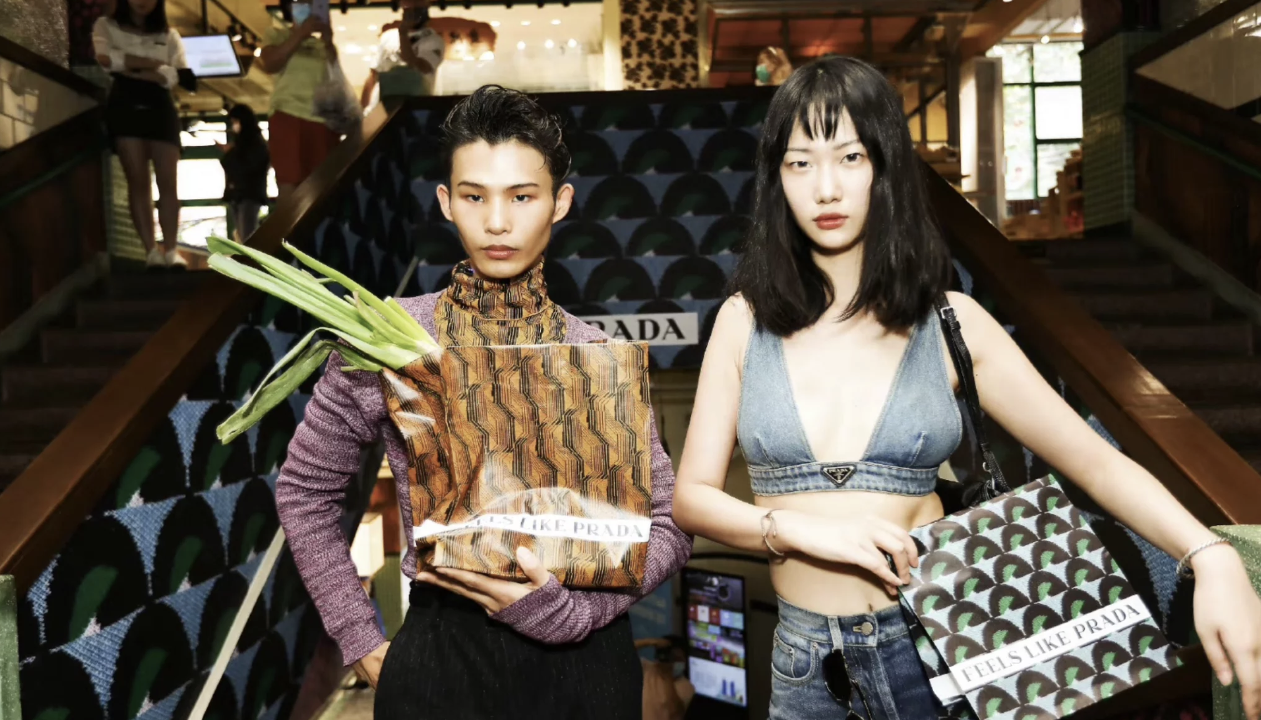 Prada transformed a Shanghai wet market into a branded pop-up, wrapping vegetables, stalls, and signage in Prada prints, elevating a deeply local everyday space into a luxury cultural moment.