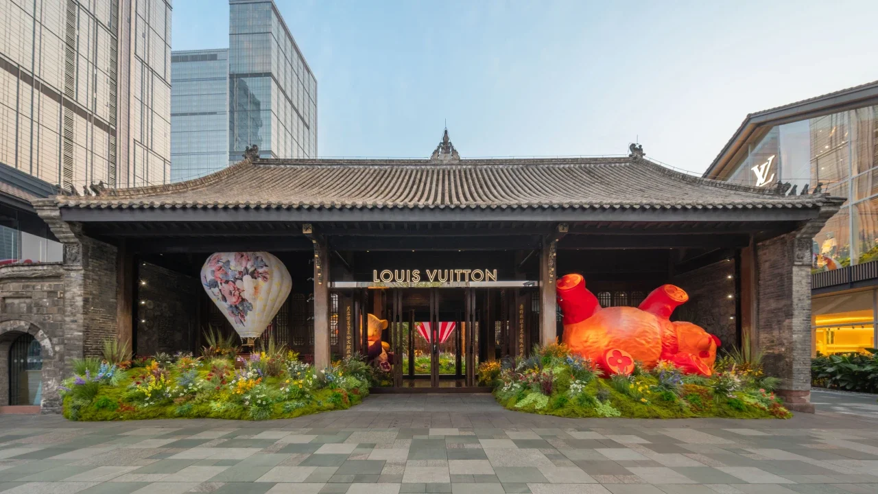 Louis Vuitton opened The Hall, its first restaurant in China, inside a heritage courtyard compound in Chengdu, drawing directly from traditional Chinese architectural language rather than a generic global luxury interior.